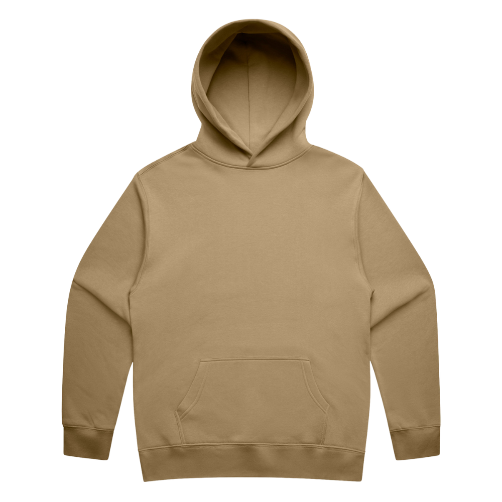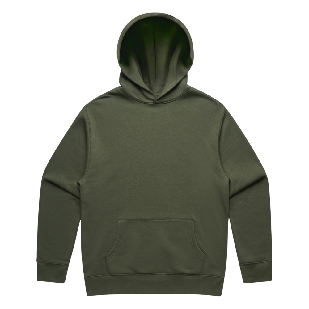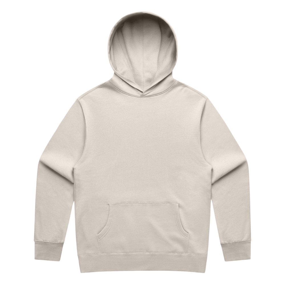 Relaxed, Mid weight, 320 GSM, 80% cotton 20% recycled polyester CVC fleece. Pre-shrunk to minimise shrinkage, pullover hood, drop shoulder, kangaroo pocket, self-fabric lined hood, no drawcord, sleeve cuff ribbing.